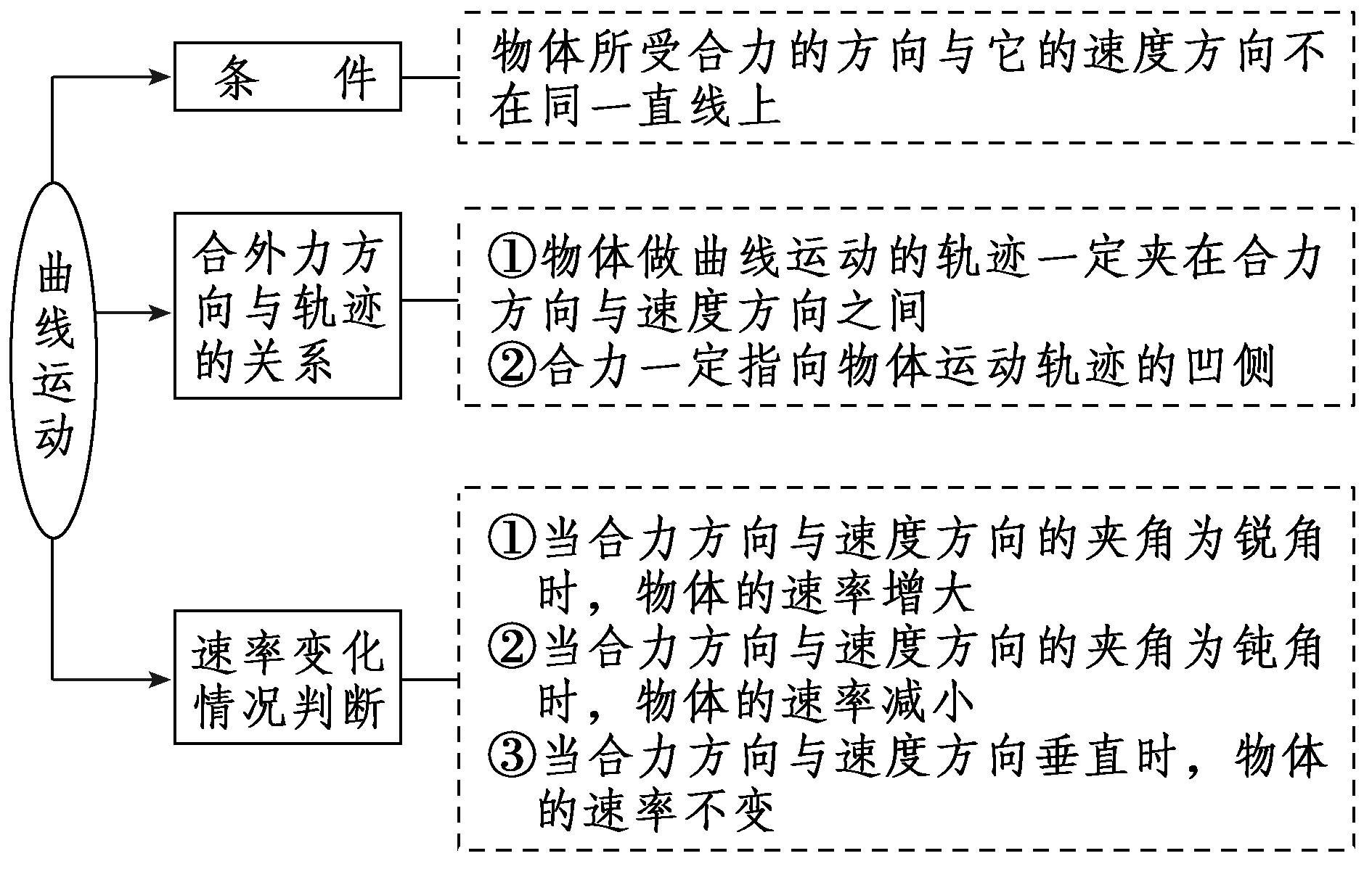 (1)从动力学角度看:物体所受合力的方向跟它的速度方向不在同一条直线上.