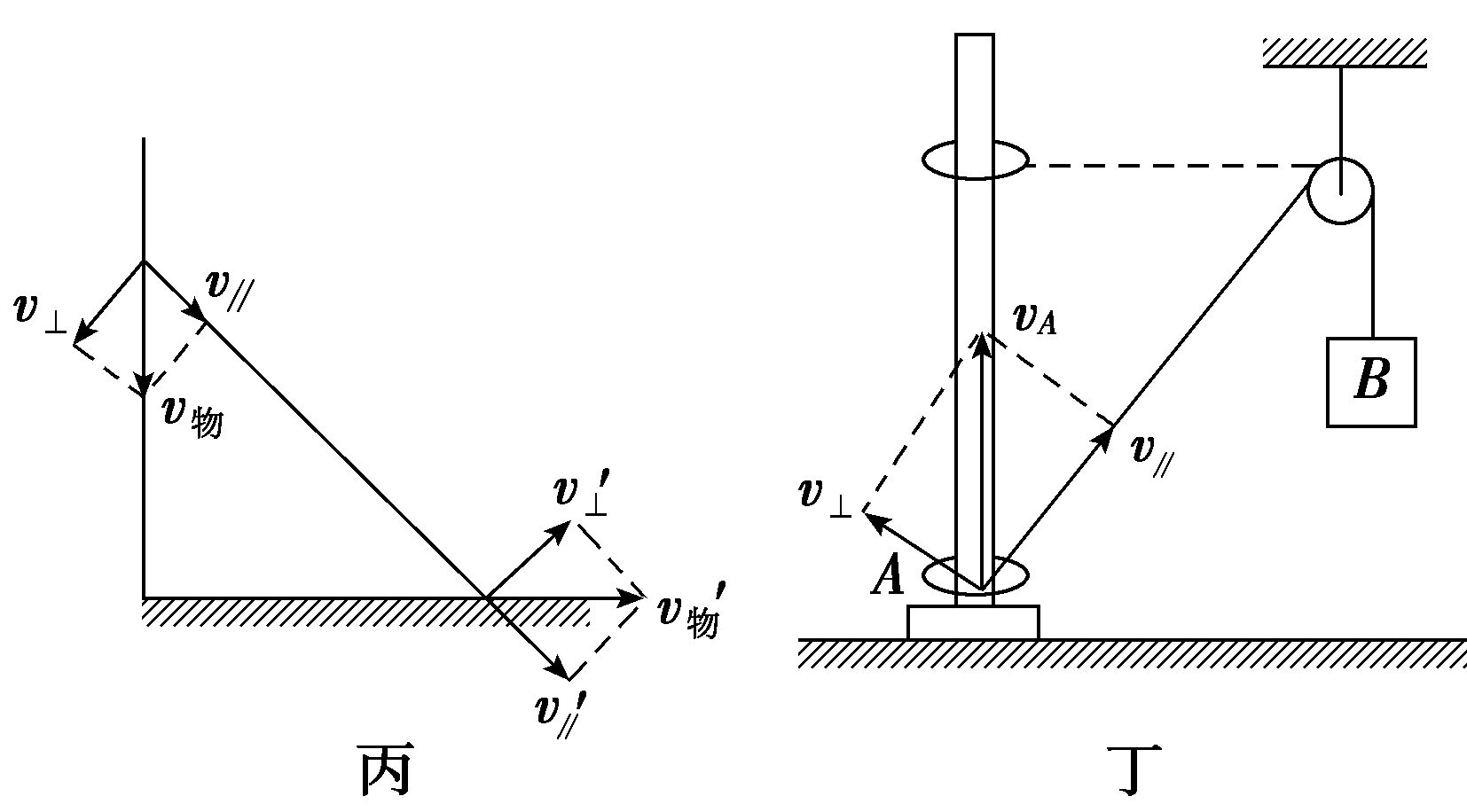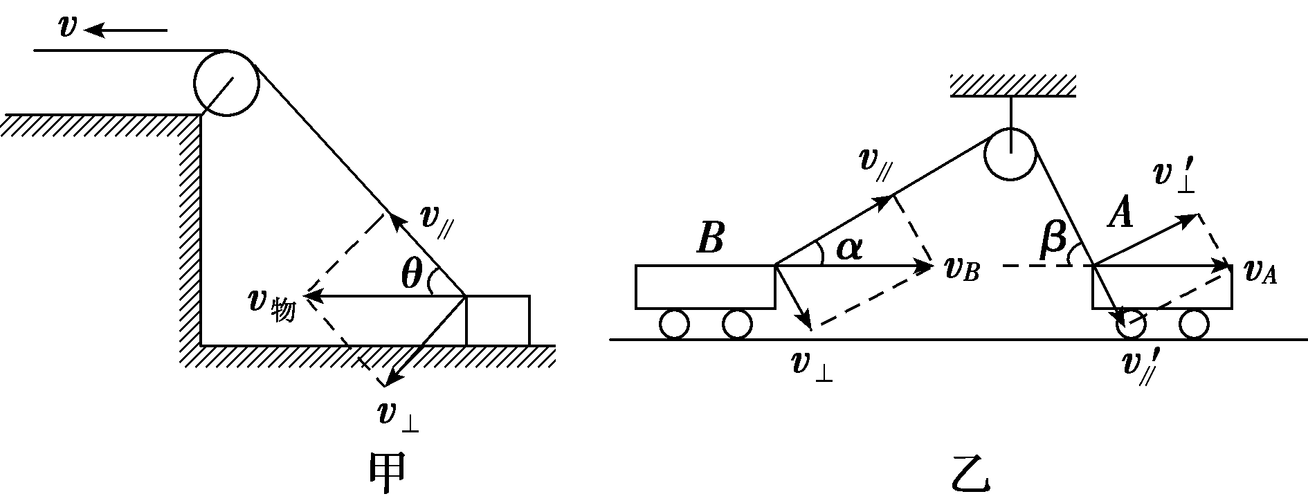 把物体的实际速度分解为垂直于绳(杆)和平行于绳(杆)两个分量,根据沿绳(杆)方向的分速度大小相等求解.常见的模型如图所示。
